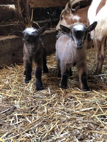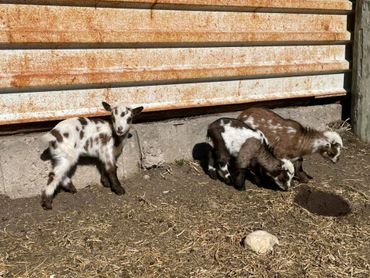 Nigerian Dwarfs are a domesticated dairy goat that originated from West Africa. They are known for their good-tasting milk, but the breed is also known for making great pets and 4-H / FFA projects. They are a hardy breed that is easy to care for. They thrive on weeds and are great for cleaning up weeds around yards and can improve pastures. They are a very social animal and make great companions for other livestock.