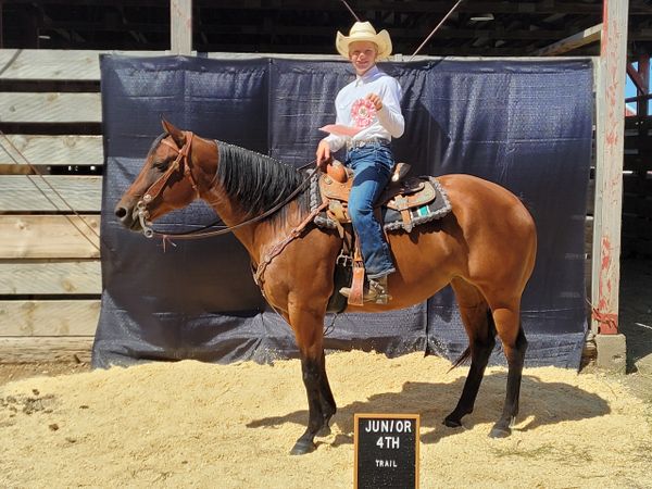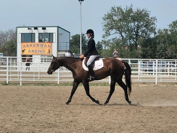 We added Rosie when we were looking for another kids horse and she did not disappoint! She was a solid horse for any job - horse shows from showmanship to jumping to games; trail riding and elk hunting in the Black Hills and Colorado.