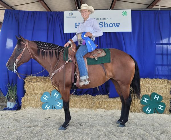 4-H State Grand Champion: Jr. Trail; Reserve Champion Jr. Horsemanship; Top 5 finishes in Jr. Huntseat, Jr. English Showmanship and Jr. Western Showmanship.